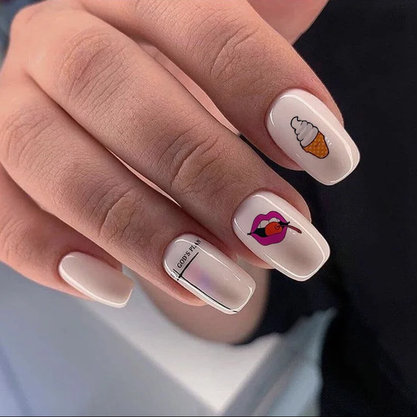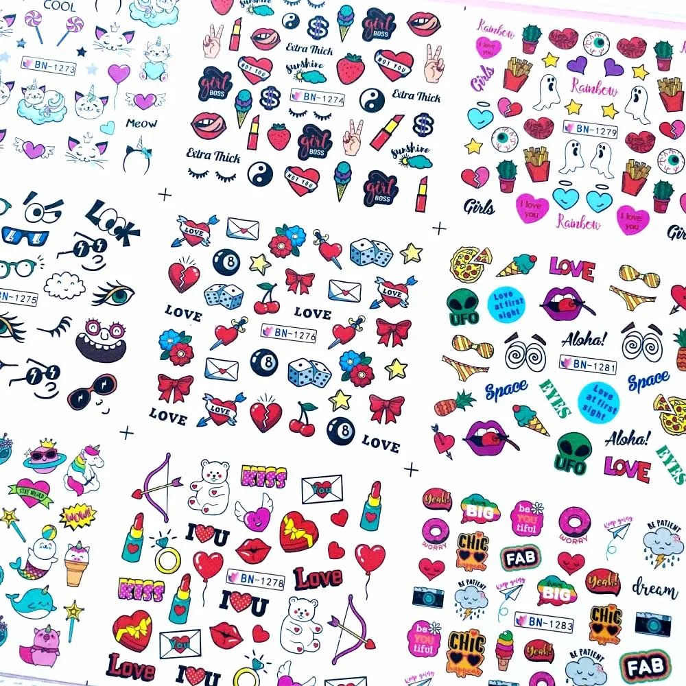 12 видов конструкций фольга на наклейки на ногти, которые размягчаются водой Милая мультяшная еда губы кот милые части Обертывания для ногтей слайдер дизайн ногтей татуировки BN1273-1284