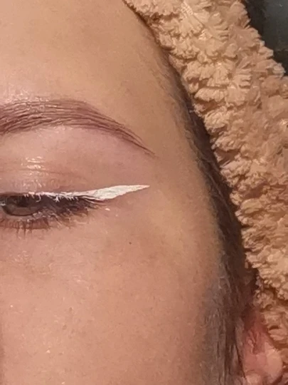 Подводка в принципе классная. Конкретно здесь белая хороша. Только разные цвета почему то ведут себя по-разному. Белый и голубой яркие а жёлтый и синий плешивят, они гораздо слабее, словно ПВА. Эта модель в разных магазинах разного качества, вплоть до состава. Может подделывают.