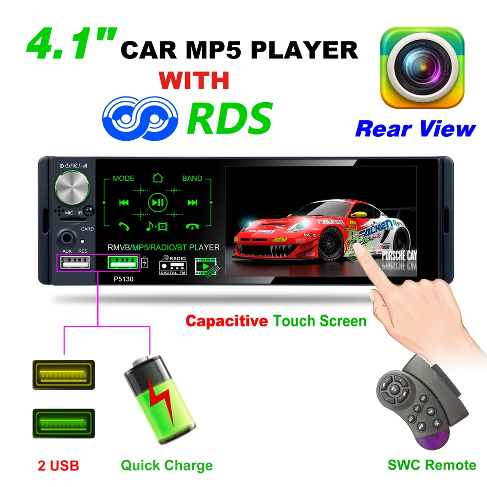 Автомагнитола AMPrime, 1 din, сенсорный экран 4,1 дюйма, стерео, bluetooth, камера заднего вида, usb, aux
