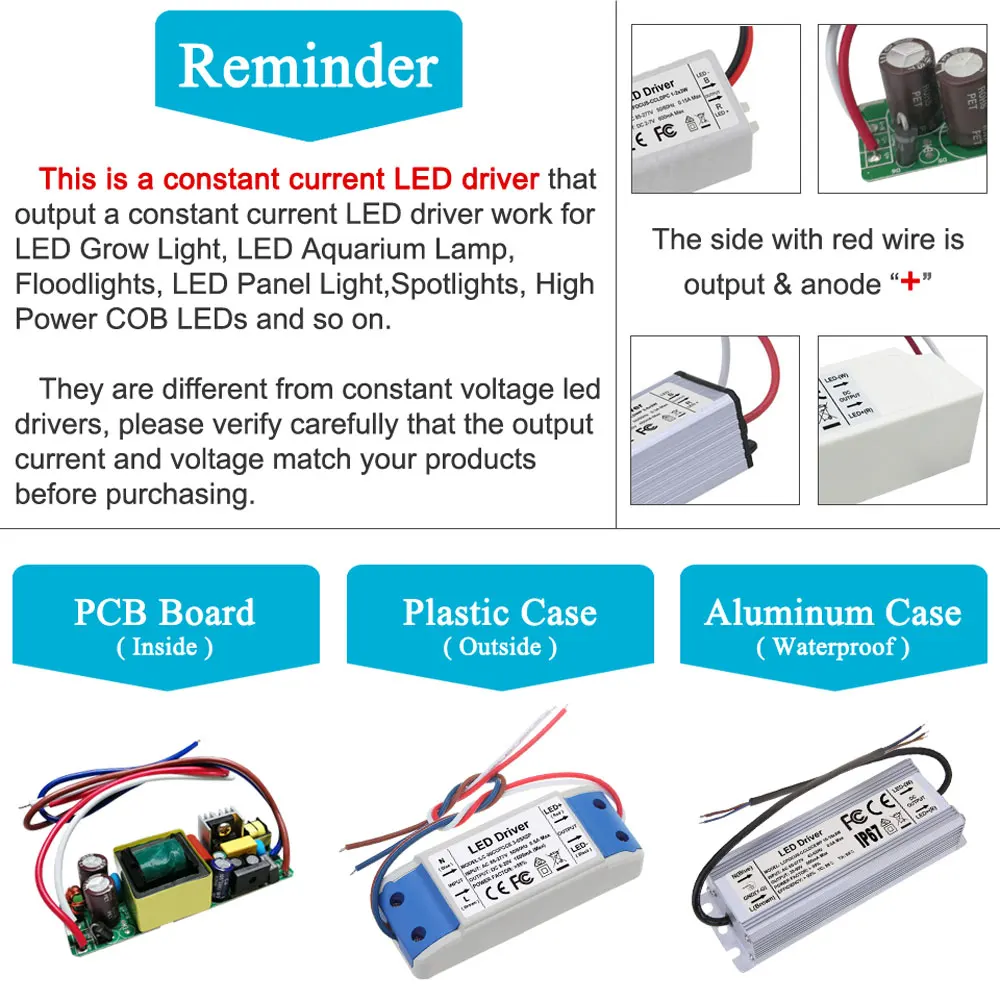 Это с драйвером постоянного тока для светодиода, он не может иметь светодиод постоянного напряжения. Он должен работать с светодиодом постоянного тока.