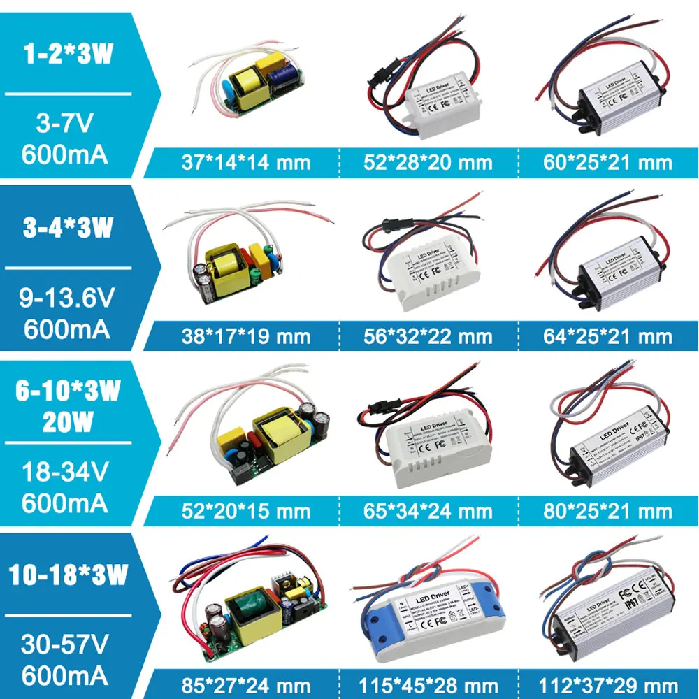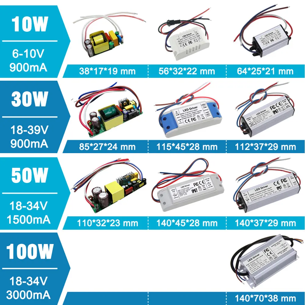 Светодиодный драйвер, 1 Вт, 3 Вт, 5 Вт, 10 Вт, 20 Вт, 30 Вт, 36 Вт, 50 Вт, 100 Вт, источник питания 300мА, 600мА, 900мА, 1500ма, 3000ма, трансформаторы для освещения, лампа «сделай сам»