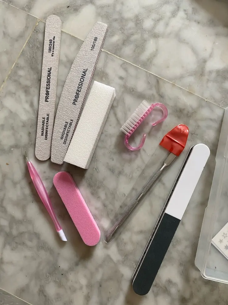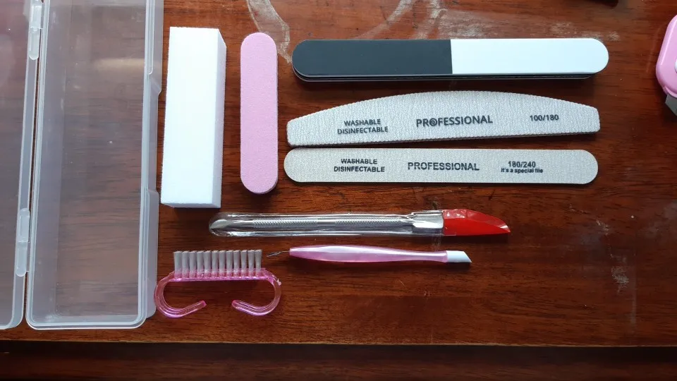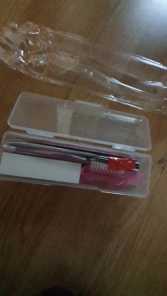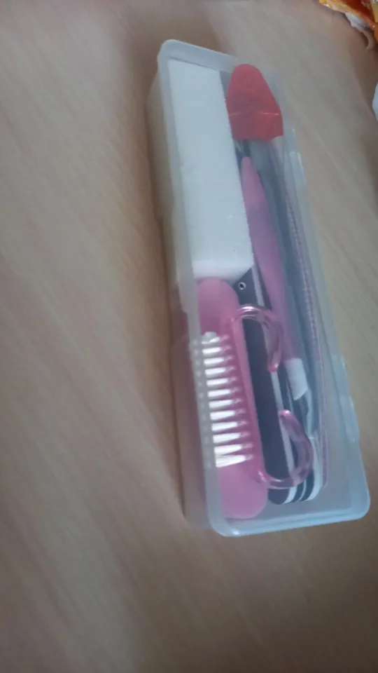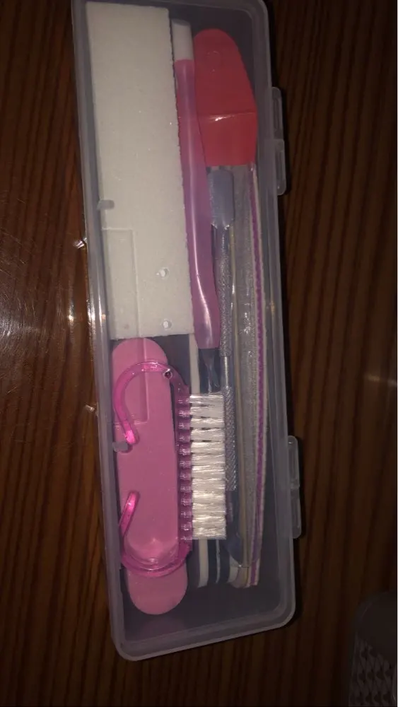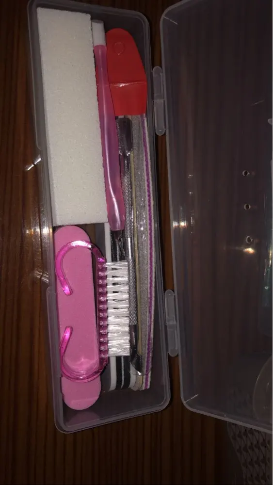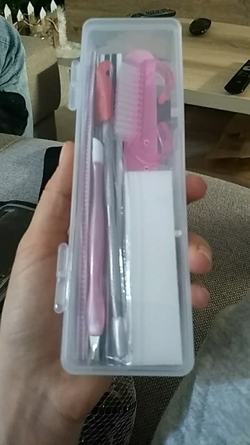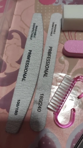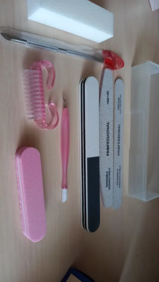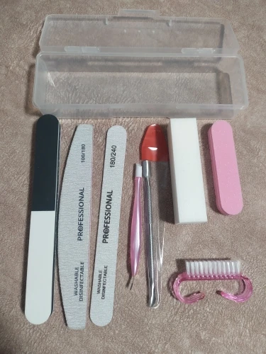 Для кутикулы двусторонняя пластиковая штука не подойдёт. С обоих сторон слишком хлипкая и шатается болтается. Баф и розовая пилка -напыление на два использования. Однозначно не стоит своих денег. Лучше взять отдельно те предметы,которые вам будут нужны. И коробку отдельно тоже можно купить. Они в том же фикспрайс дешевле. Пилки не плохие.