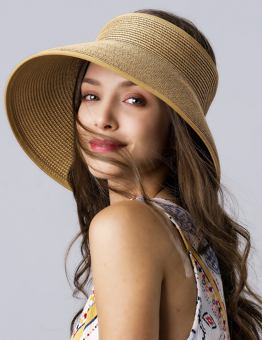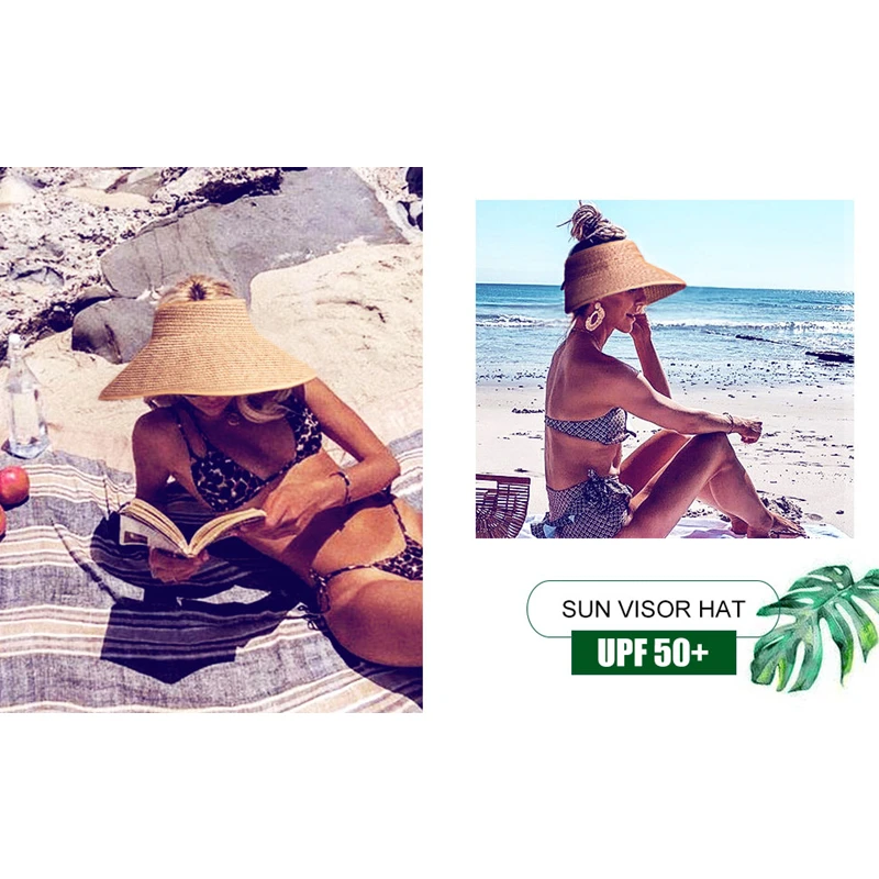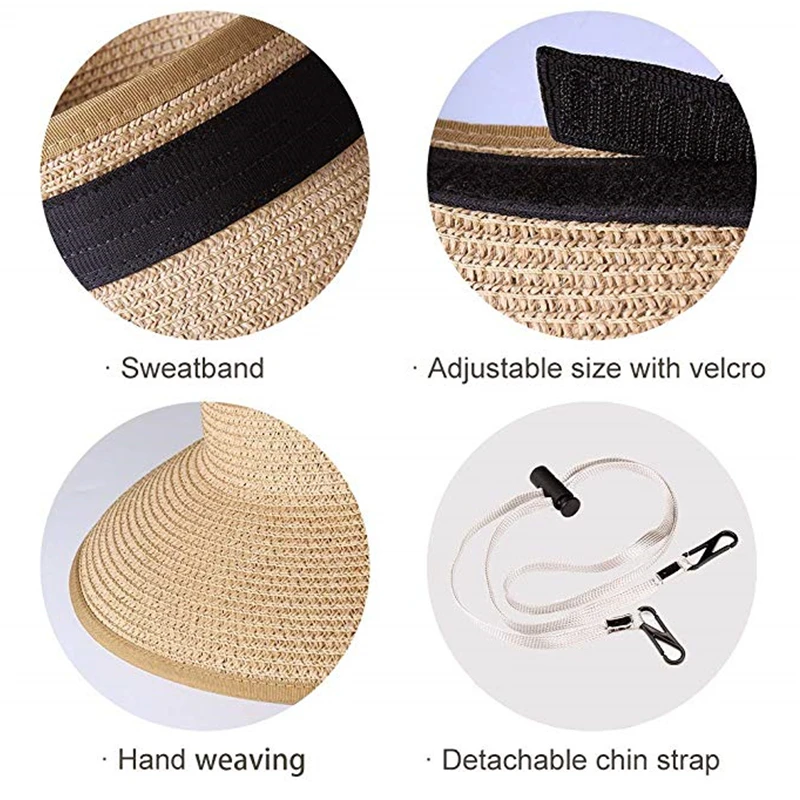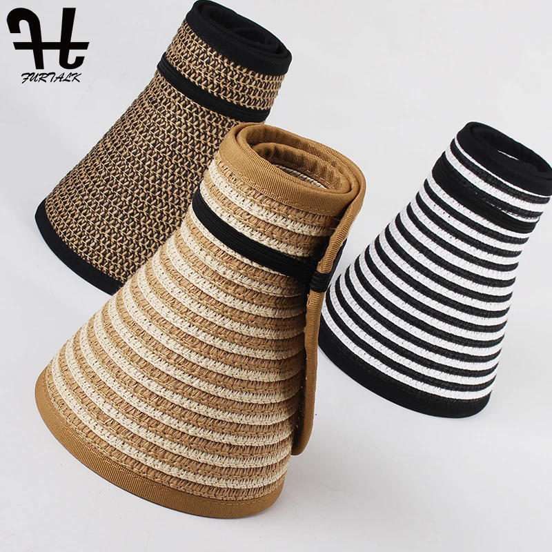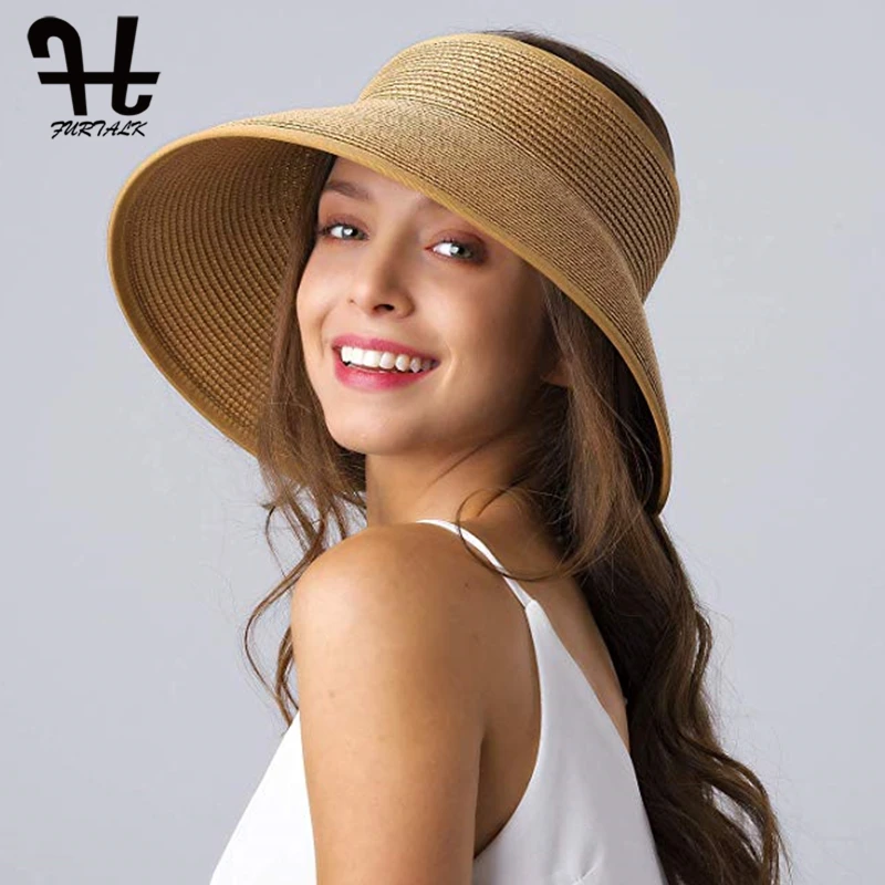 Шляпа FURTALK Соломенная женская с козырьком от солнца, складная пляжная шапка для прически конский хвост, с регулируемыми полями, UPF 50 +, лето