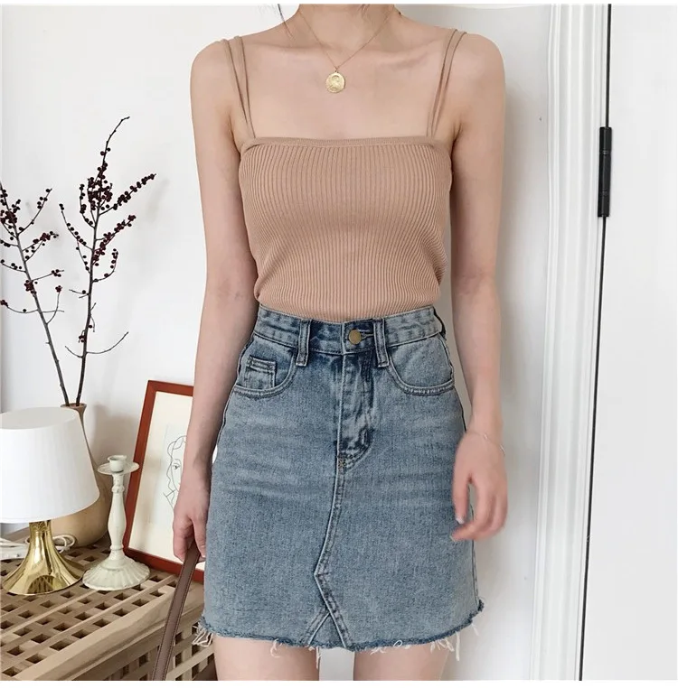 Модная женская майка с открытыми плечами без рукавов Летний облегаю...