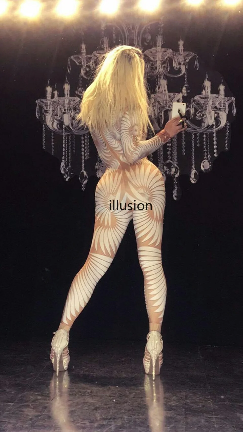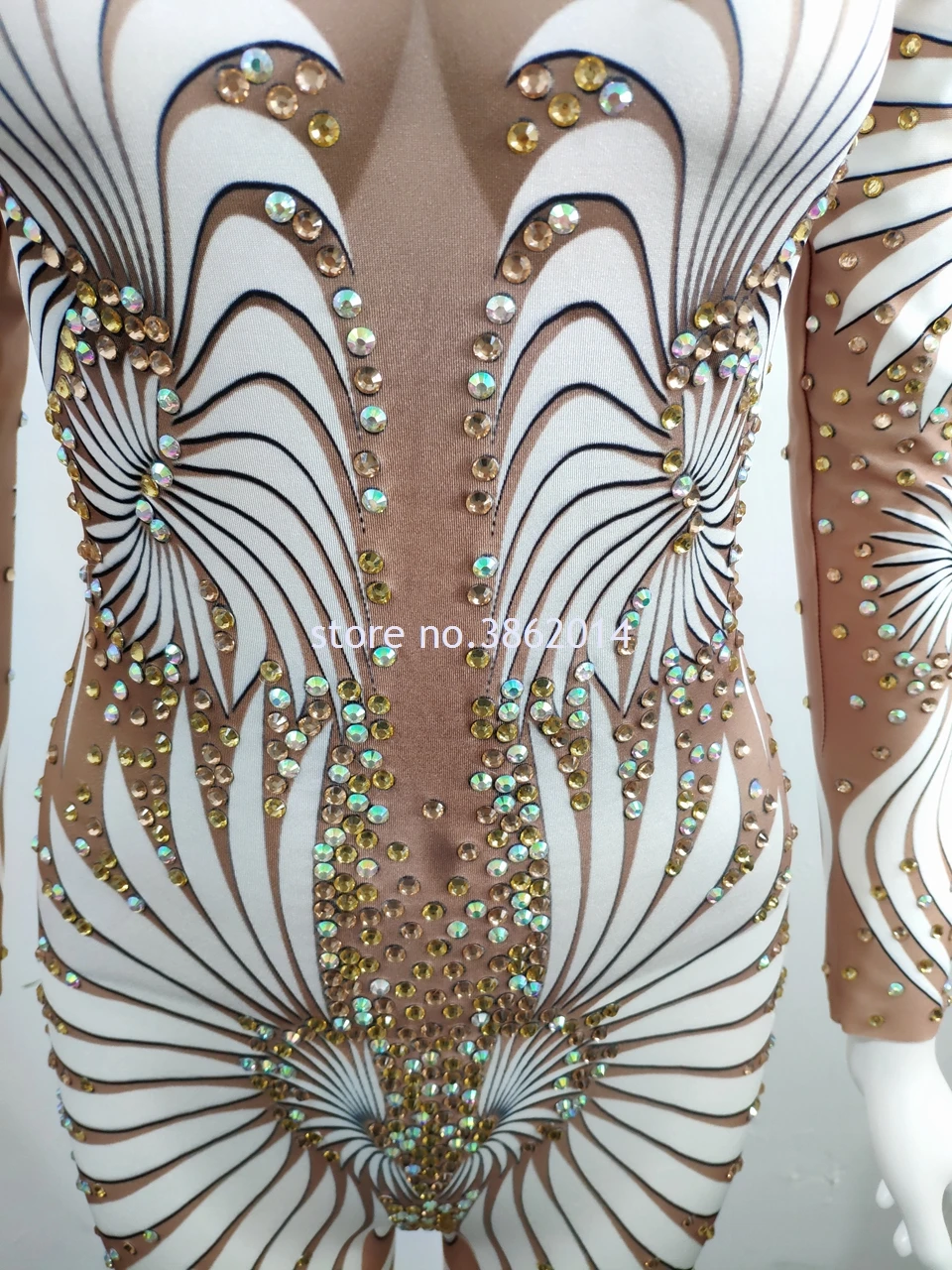 Сексуальный блестящий комбинезон с принтом и длинным рукавом, Блестящий Стразы, боди, сценическая одежда, Женский клубный костюм певицы, наряд для вечеринки