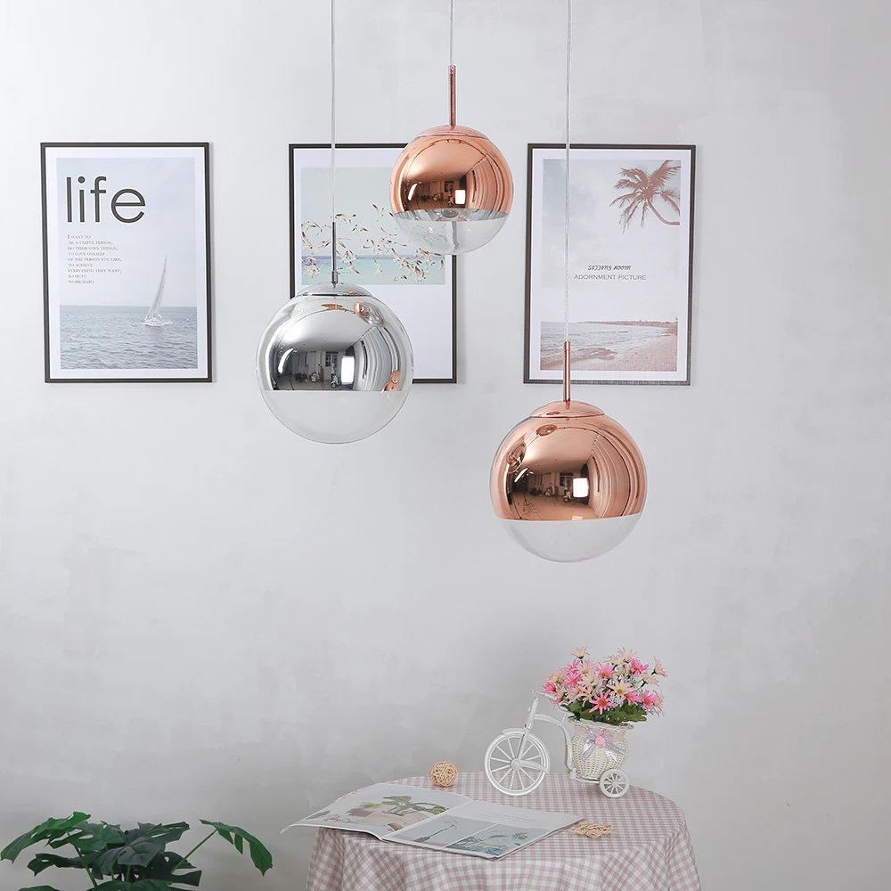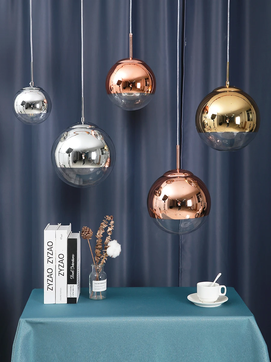 Современное искусство золото подвесной светильник дизайн стеклянный шар светодиодный подвесной светильник s зеркальный абажур спальня бар гостиная светильники