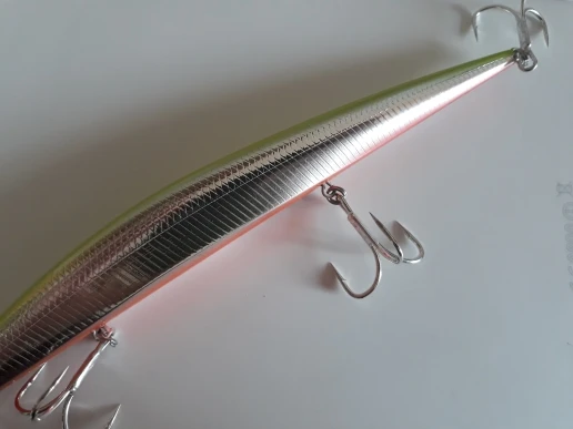 Очень хорошая вещь, только тройка немного большая, и они соединяются в тело и не дают ему хорошо плавать. Я изменил их на один из мерок 6 #, за исключением тройного хвоста (4 #), я оставляет оригинал.