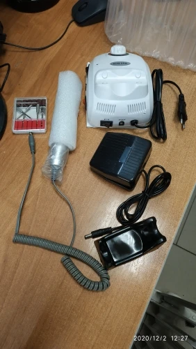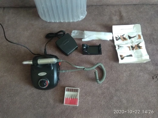 Заказ пришёл за 6 дней СДЭКом. Всё как в описании, фрезы лучше сразу другие заказать (хотя я сделала маникюр фрезой, которая идёт в комплекте, всё получилось хорошо). Ручка не вибрирует. Для домашнего использования самое то.