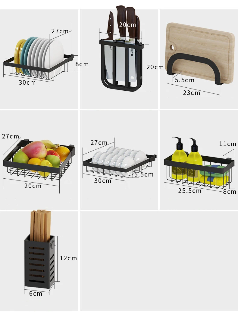 Съемные многофункциональные детали могут удовлетворить все ваши потребности, вы можете регулировать положение деталей в соответствии с вашими потребностями. Это поможет вам сэкономить много места, сохранит вашу кухню в чистоте и порядке.