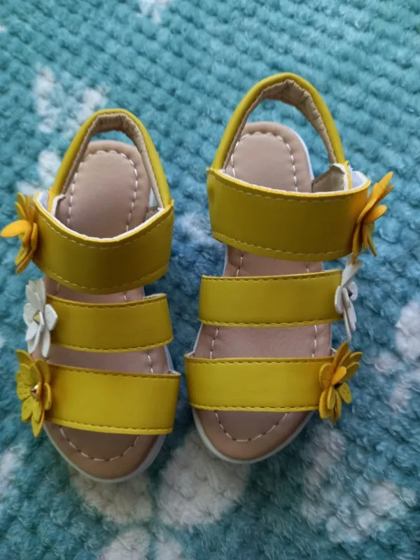 Wow, sandaloki красивая и очаровательная застежка-липучка, цвет ярко-желтый, платье темнее, так как это только более темный цветок для сандалий, резиновая подошва с интересным изображением malpki, я не знаю, как размер, потому что это подарок, но это очень удачная покупка, доставка 21 день-спасибо * _ *