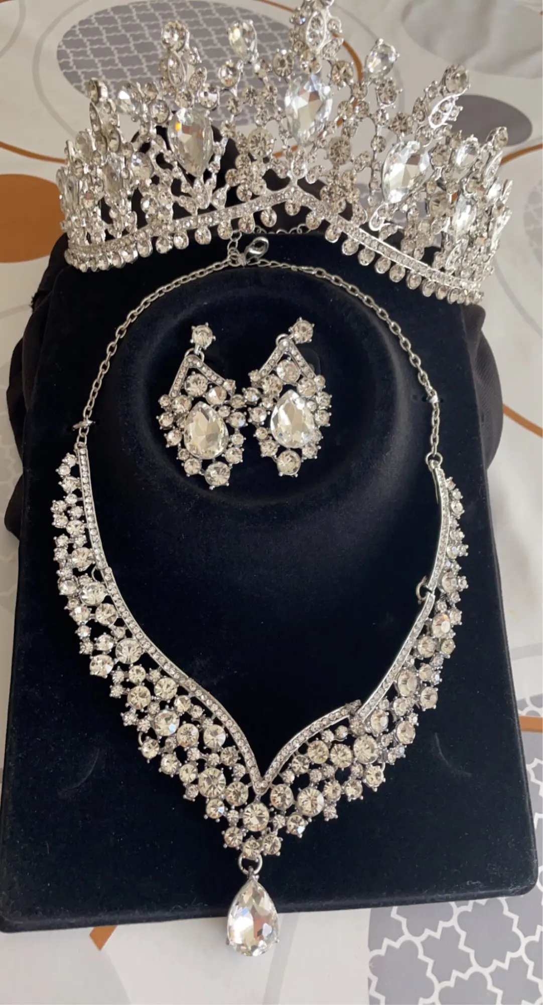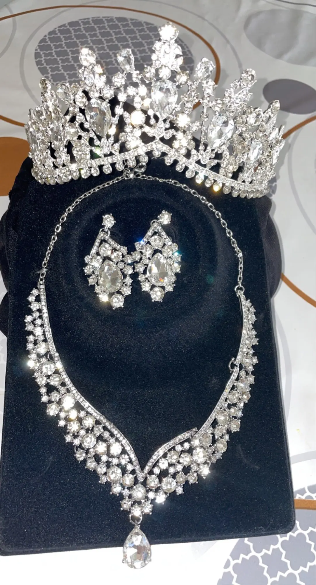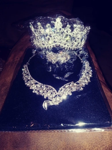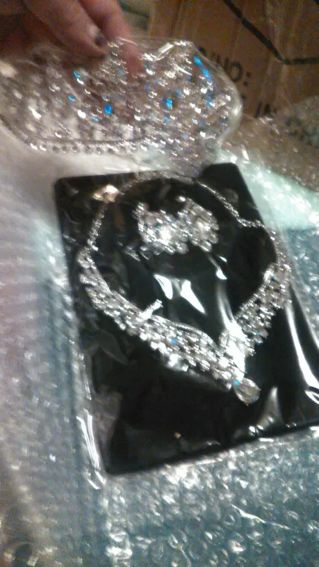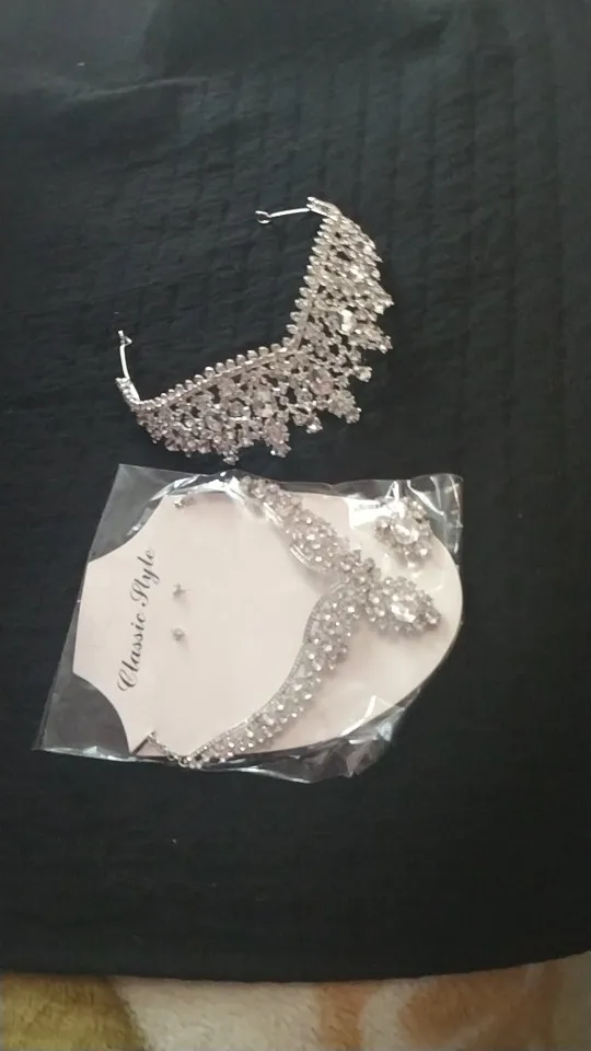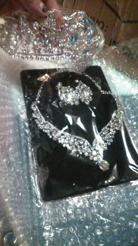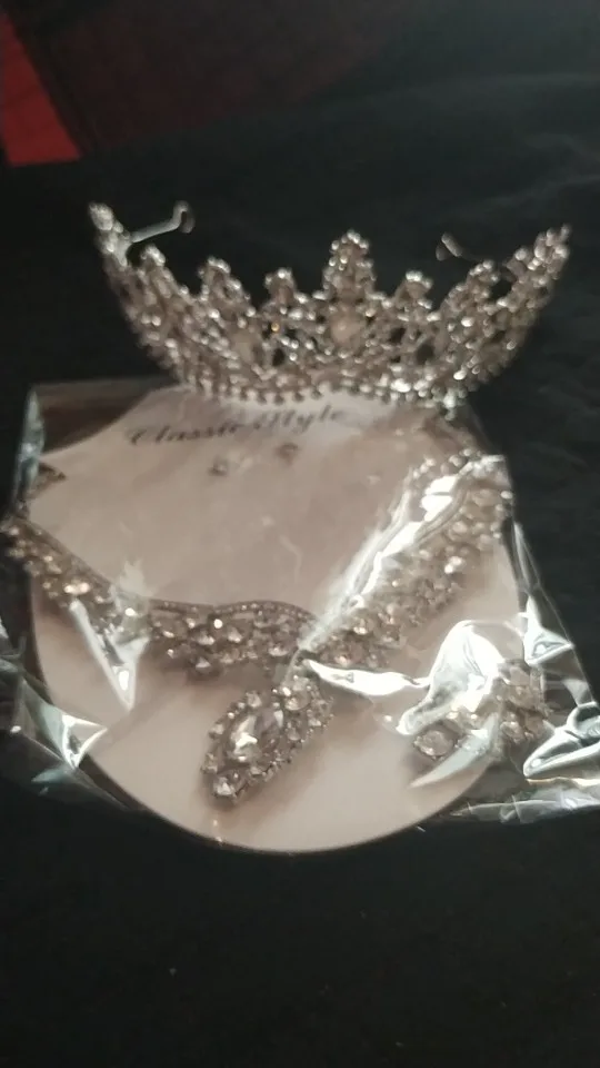 Покупала полный набор на выпускной и не пожалела. Посылка пришла за 3 недели до Республики Коми. Тиара невероятно красивая и не такая тяжёлая, как я думала, а вот серёжки достаточно увесистые, ожерелье шикарное. Всё супер, мне очень понравилось:)