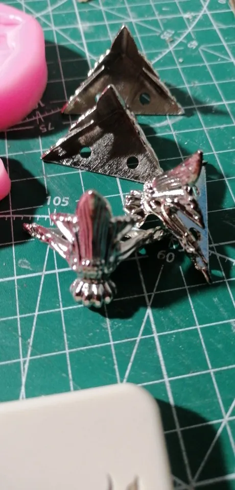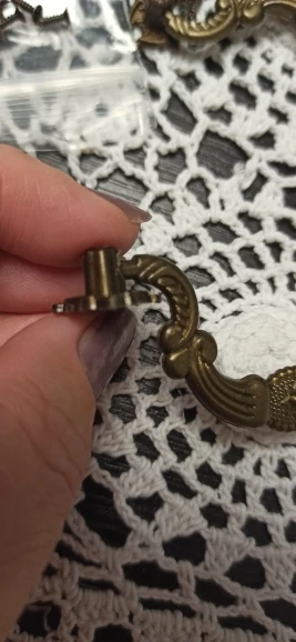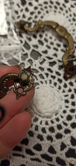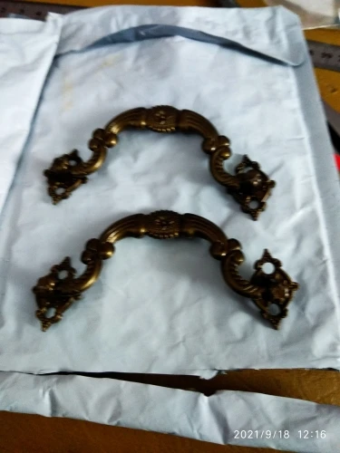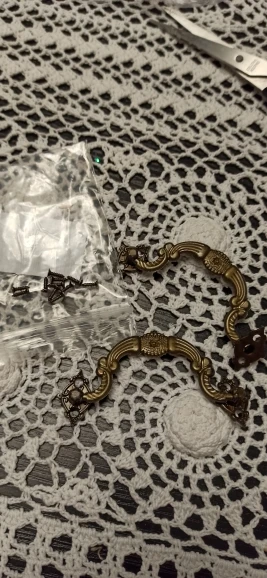 Получила ручки и была расстроена, сдуру заказала два комплекта. Ручки малюсенькие, из пластмассы, хлипкие, их страшно в руки брать потому что развалиться. У продавца написано материал -другое. При заказе думала облегченный металл, а нет коленая пластмасса и гвоздиками её не закрепить. Не открыла спор потому что не те деньги из-за которых стоит биться, куда нибудь приспособлю.