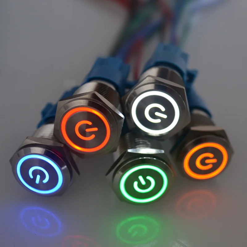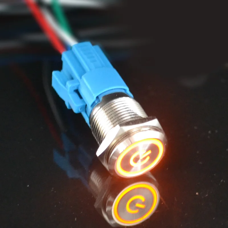 1 шт. Новый 16 мм Мгновенный металлический кольцевой кнопочный переключатель светодиодный самоблокирующийсясамовосстанавливающийся Водонепроницаемый дверной переключатель для двигателя автомобиля
