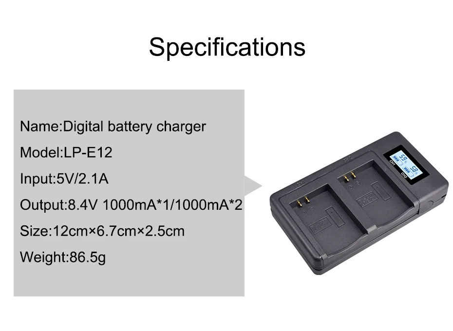 PALO LP-E12 LPE12 LP E12 LCD USB цифровая камера зарядное устройств...