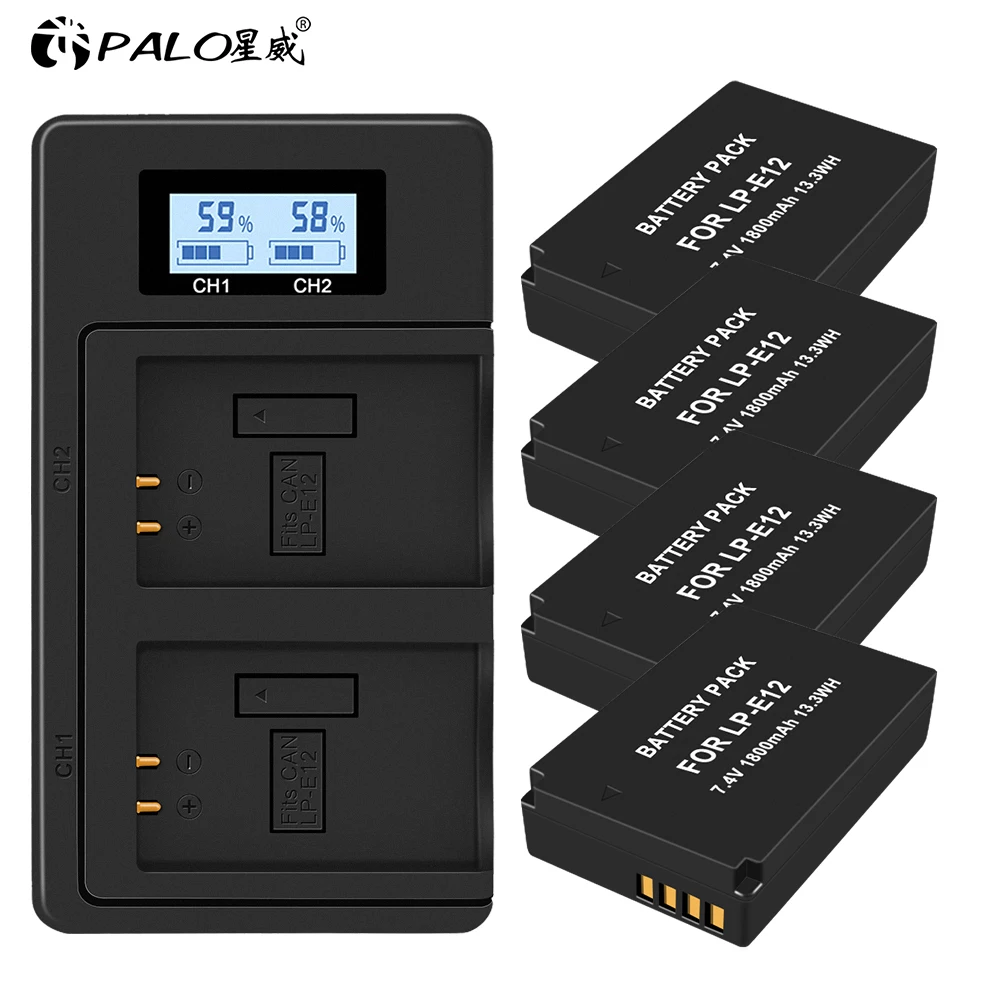 Аккумулятор для фотоаппарата PALO 1800 мАч LP-E12 LPE12 LP E12 + зарядное устройство USB с ЖК-дисплеем для Canon M 100D Kiss X7 Rebel SL1 EOS M10 EOS M50 DSLR