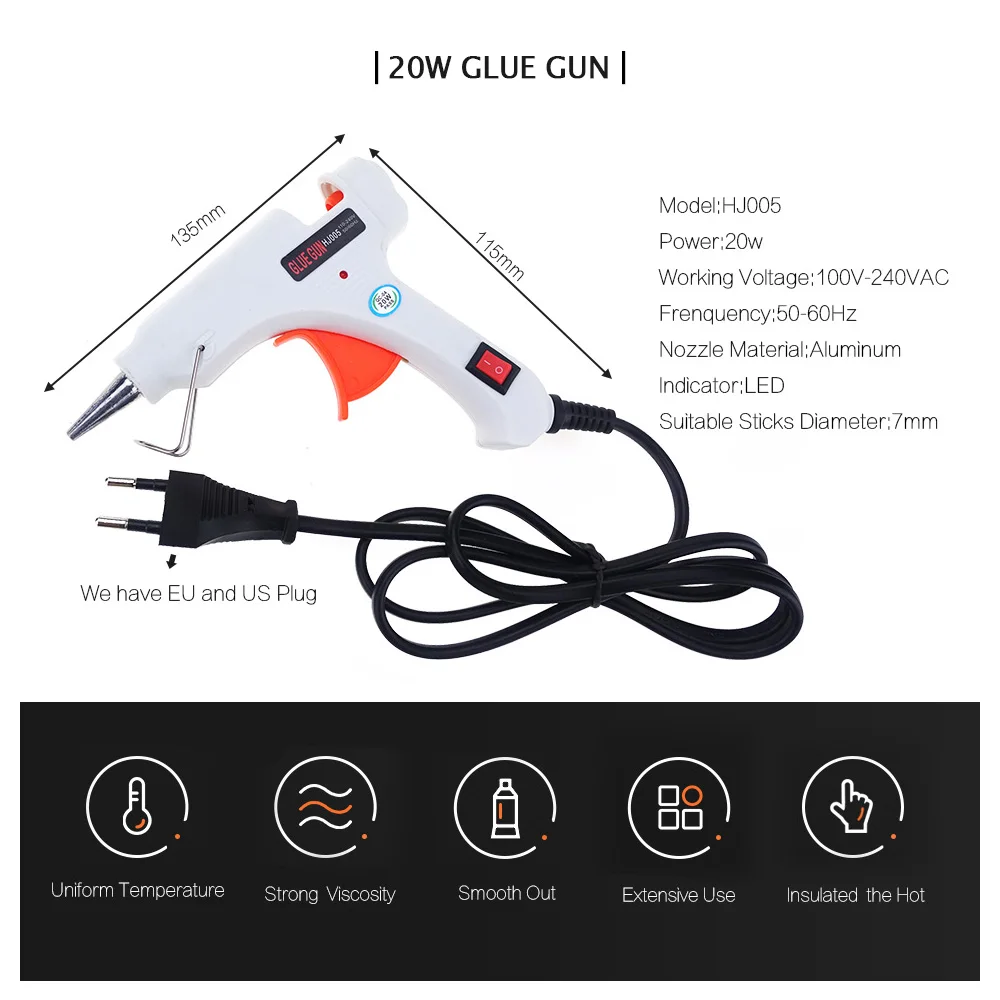 Набор инструментов для самостоятельного ремонта, клеевой пистолет 10 в 1, 240 в, 20 Вт, с палочками, пинцет, железные наконечники и т. д.