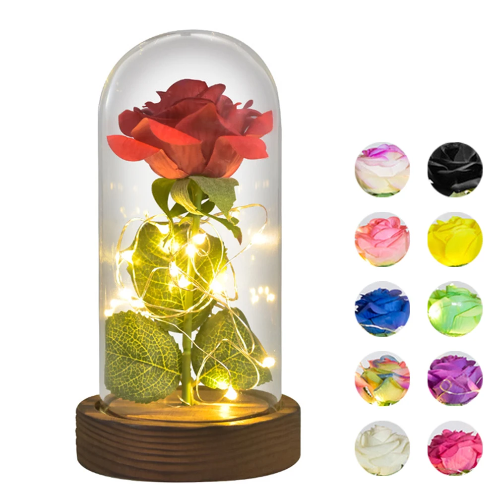 Вечная роза в стеклянном куполе искусственный цветок вечная светодиодсветильник ка красавица чудовище День Святого Валентина День матери рождественские подарки для женщин