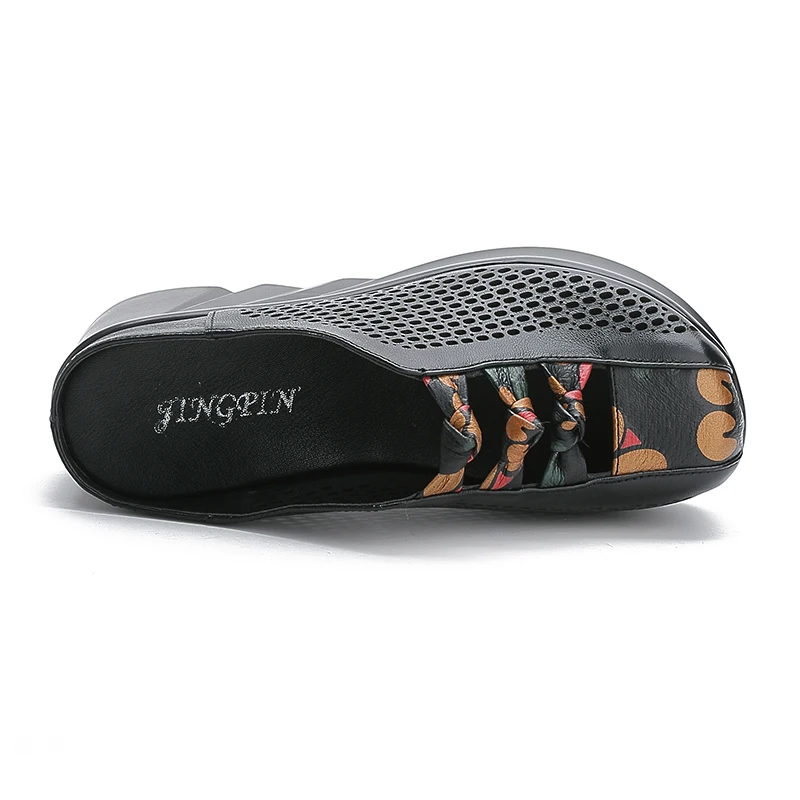 GKTINOOКоллекция 2022 года; Модная женская обувь с вырезами; Шлепанцы; Летние босоножки на танкетке с закрытым носком; Женские шлепанцы из натуральной кожи