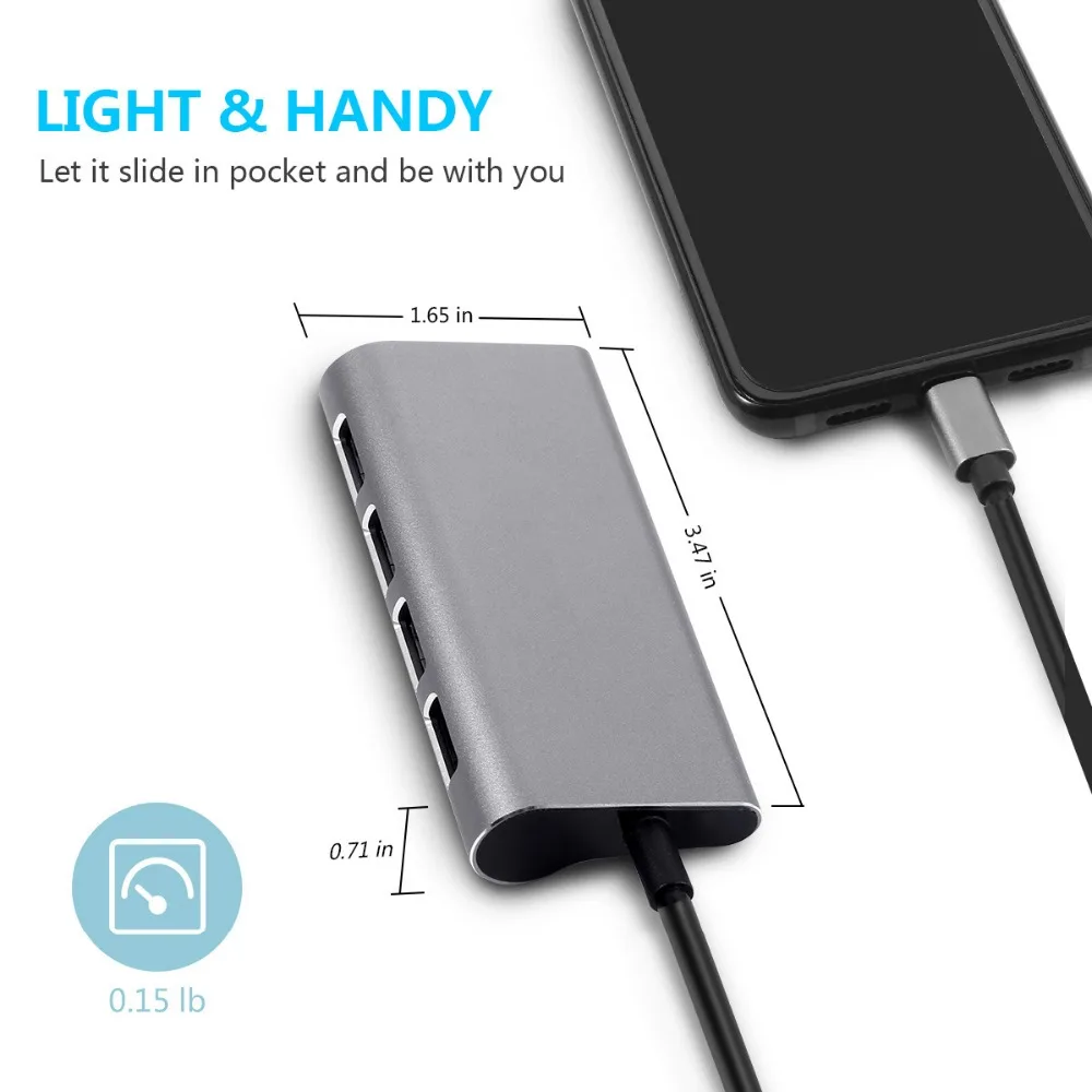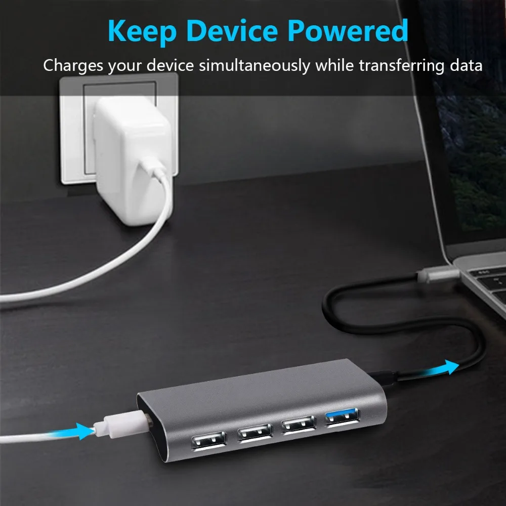 Type-C 4-портовый концентратор USB3.0 PD из алюминиевого сплава 5 Гбитс Супер Скоростной Разветвитель USB C Быстрая зарядка концентратор для Mac Book Xiaomi GALAXY S8
