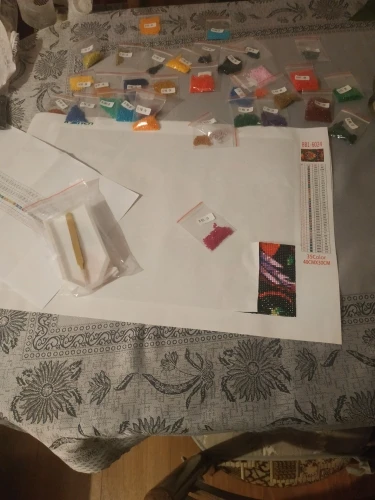 Пришла быстро , пока собираю, все нравится, в наборе и пинцет есть и палочки , что очень удобно:))как соберу дополню отзыв