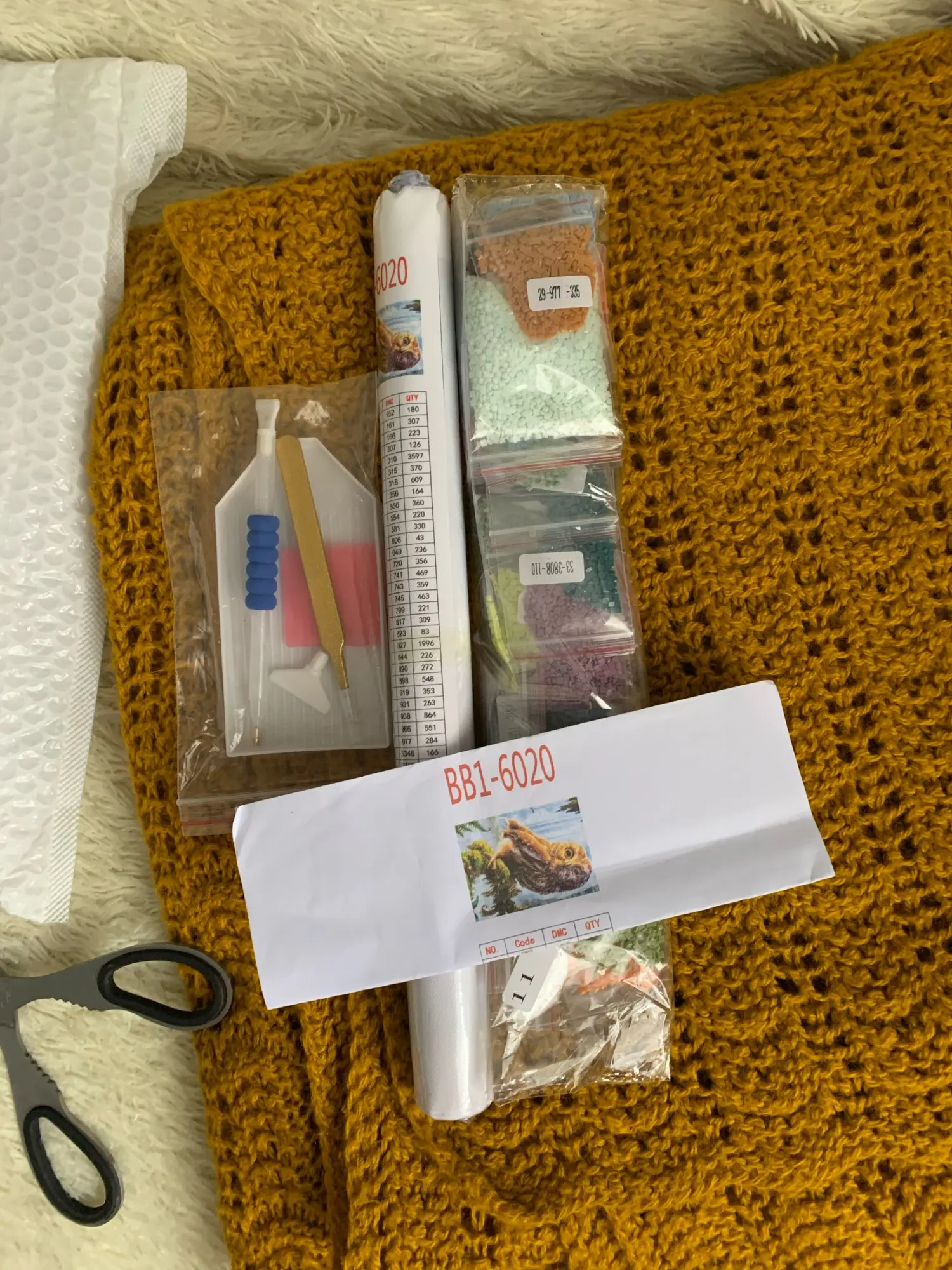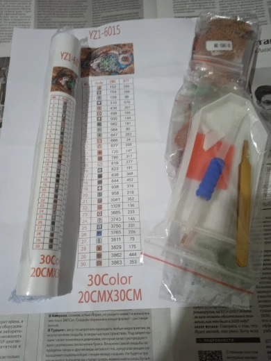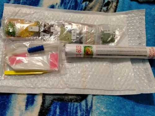 Посылка пришла быстро! Все хорошо упаковано, холст намотан на валик, не помятый, стразы все в отдельных пакетиках, инструменты все в наличии и пинцет тоже! Мне всё понравилось! Продавец ответственный! Рекомендую, заказывайте, не пожалеете! Спасибо большое!