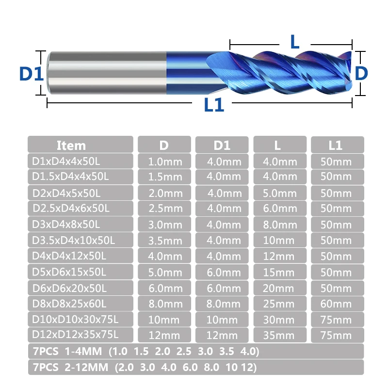 Фреза для станка с ЧПУ XCAN, 1-12 мм, с синим покрытием