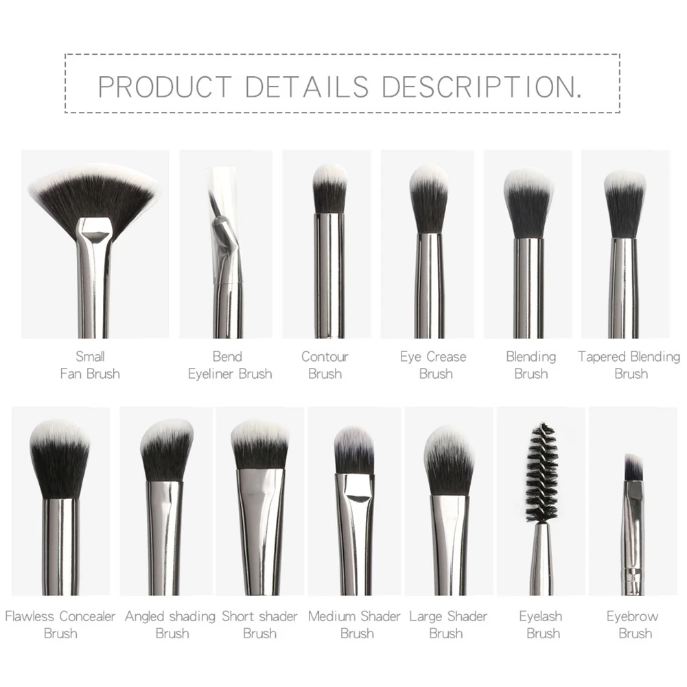 Характеристика:Основная кисть для глаз, прочная и простая в использовании, подходит для повседневного макияжаПростой и удобный в использовании металлический дизайн ручки, более модныйИзготовлено из высококачественных синтетических волокон. Включает в себя полный ассортимент 12 кистей для макияжа. Кисти мягкие и шелковистые на ощупь.Они равномерно наносят макияж и легко чистятся.Каждая кисть разработана с длинной, простой в захвате резиновой ручкой краски для точности во время нанесения.Гипоаллергенный, подходит для всех типов кожи.Характеристики:Тип: набор кистей для макияжаКоличество: 12 шт.Пол: унисексРазмер посылка: 18*8*2 см/7,09*3,15*0,79"Тип кожи: все типы кожи sЩетинная кисть Длина: 0,7-2,5 см/0,28-0,98"Полной длины: 15,5-17 см/6,10-6,69"Как чистые Кисточки для макияжа:1. Намочите щетину теплой водой2. Поместите каплю кисти для макияжа очищающее средство3. Вихревая щетка в воде и мягко массирует щетинки4. Выдавите краску чистой водой и осторожно выдавите воду5. Восстановите форму и дайте высохнуть вверх дномПосылка включает в себя:12 кистей для макияжаПримечание:1. Возможны отклонения в 1-3 мм из-за ручного измерения.2. Из-за различных дисплеев и другого светильник, изображение может не отражать фактический цвет товара.Спасибо за понимание.