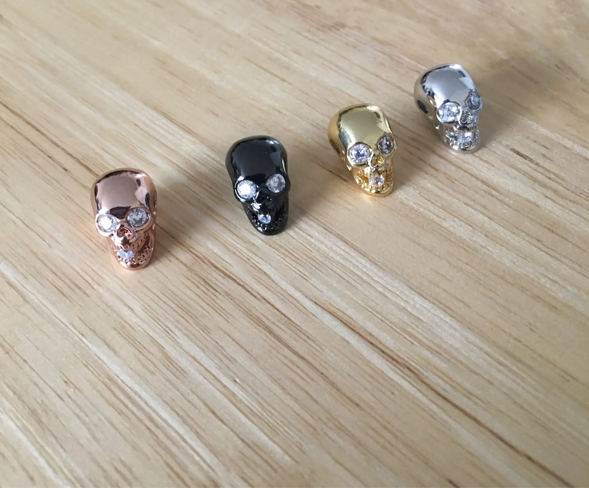4 шт., медные бусины WLYeeS из белого циркония с черепом, инкрустация фианитами, металлические бусины с отверстием насыпью для изготовления ювелирных изделий, браслетов, ожерелий, сделай сам