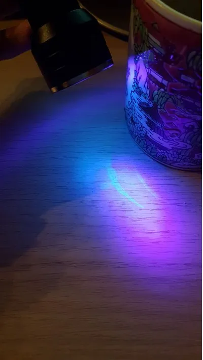 Фонарь довольно мощный, пятна помогает обнаружить. А еще в темной комнате можно устроить дискотеку со светомузыкой :)
