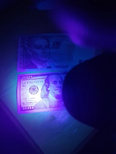 светит не очень ярко, но реально УФ-светильник 21 светодиод - все люминесцентные вещи высвечивает хорошо, стяжки обычные светятся - не ожидал от них, продавцу респект