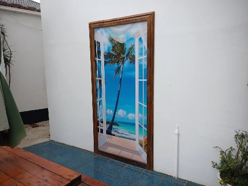 3D наклейка на дверь, окно, балкон, кокосовое дерево, вид на море, Настенная Наклейка на стену, самоклеящиеся съемные домашние наклейки на двери и стены
