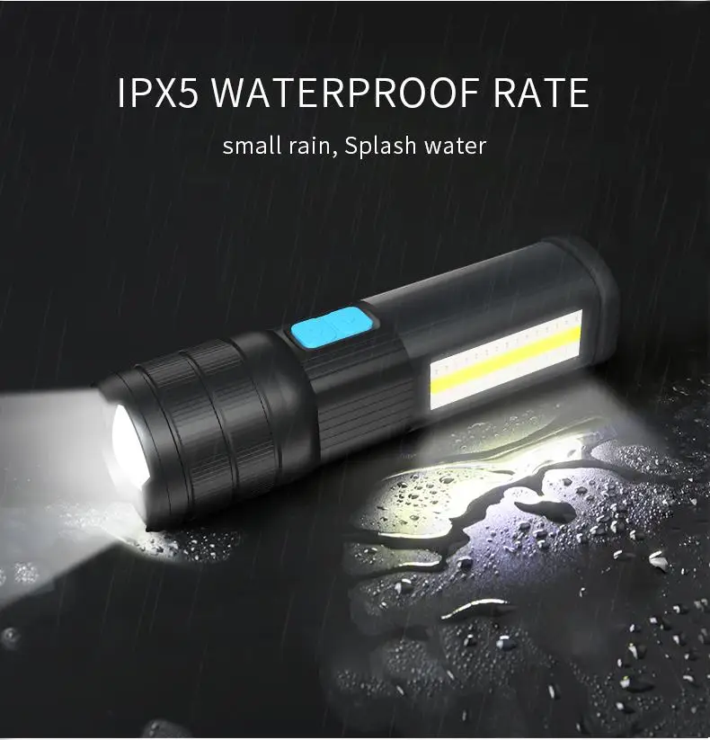 Светодиодный фонарик с вращающимся телескопическим зумом, светодиодный фонарь с COB аккумулятором, фонасветильник для кемпинга с функцией зарядки телефона, новинка 2019