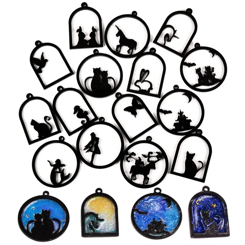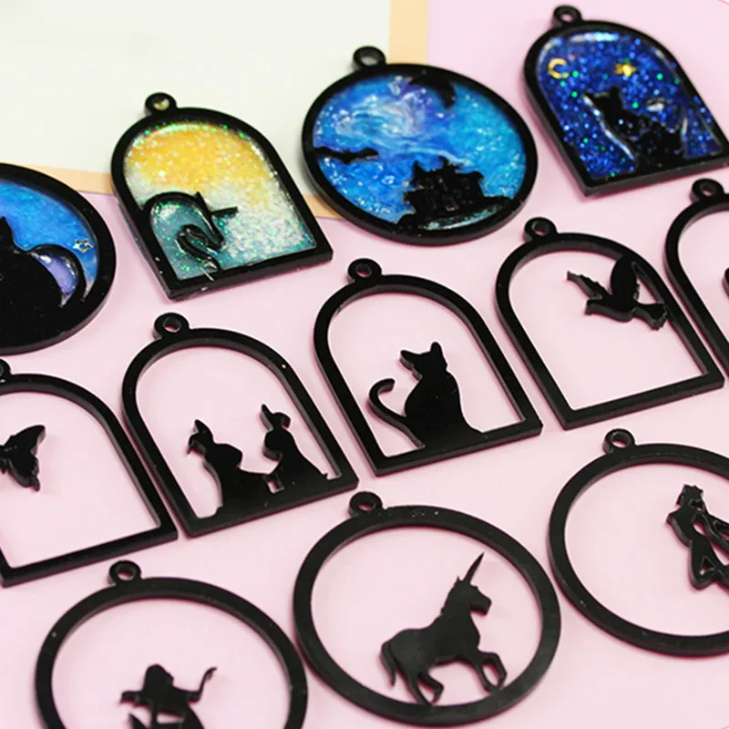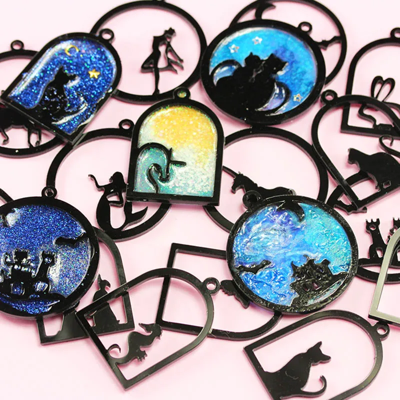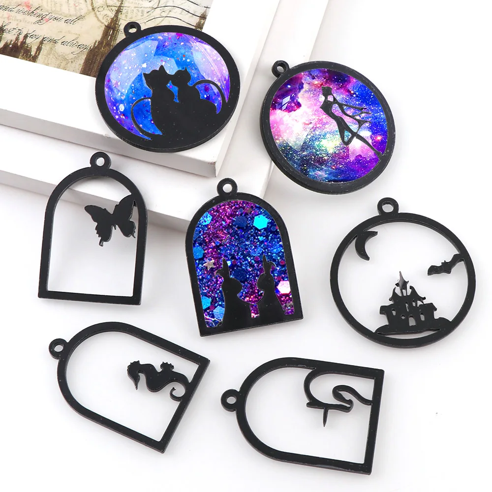 Акриловая подвеска в форме бабочки, рыбы, кошки, девушки, кролика, животных, Золотая Очаровательная рамка, оправа для кабошона, очарование из УФ-смолы, 1 шт.