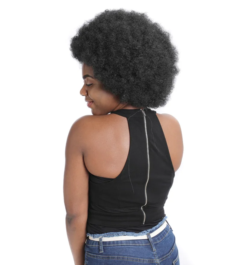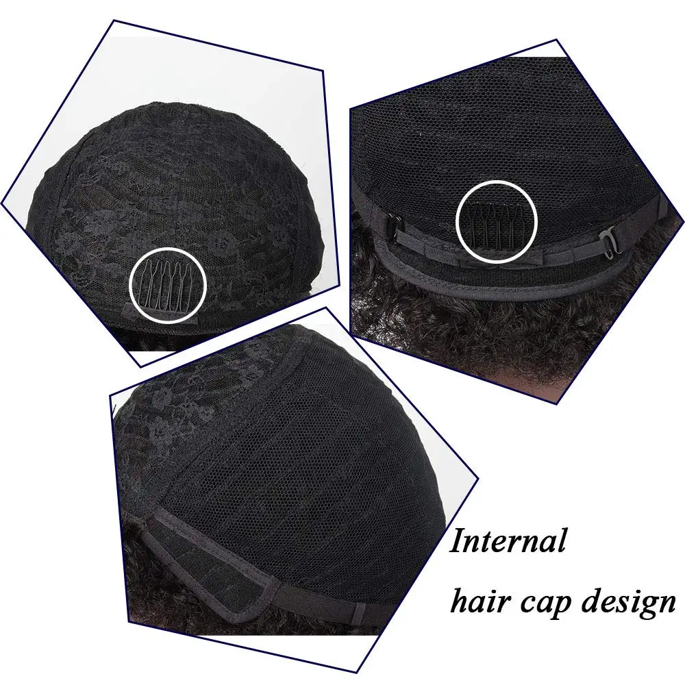 Парик из 100% бразильских волос Remy, завитые волосы с машинкой, черные вьющиеся человеческие волосы