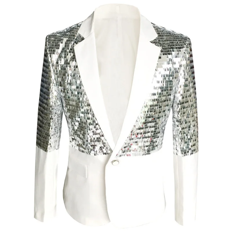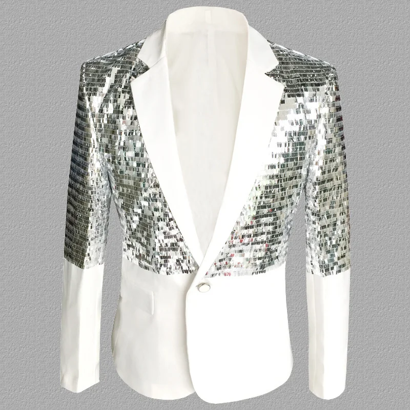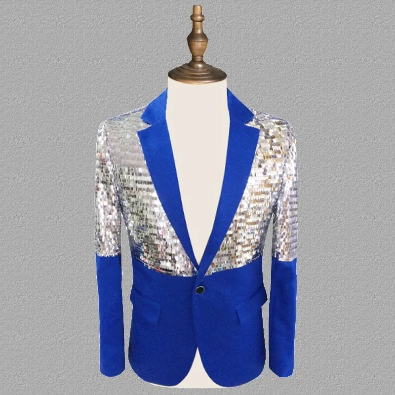 Модный облегающий блейзер с блестками для выступлений, сценический костюм, пиджак, костюм для певицы, блейзер для мужчин размера плюс, S-5XL