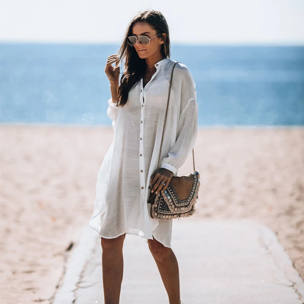 2022 сексуальные накидки на бикини, повседневное летнее пляжное платье выше колена с V-образным вырезом, туника, женская пляжная одежда больших размеров, купальный костюм, накидка Q771