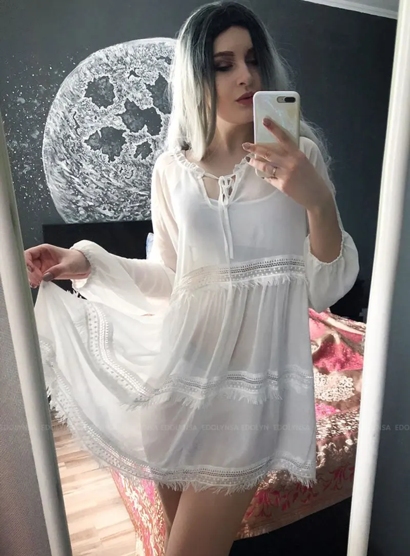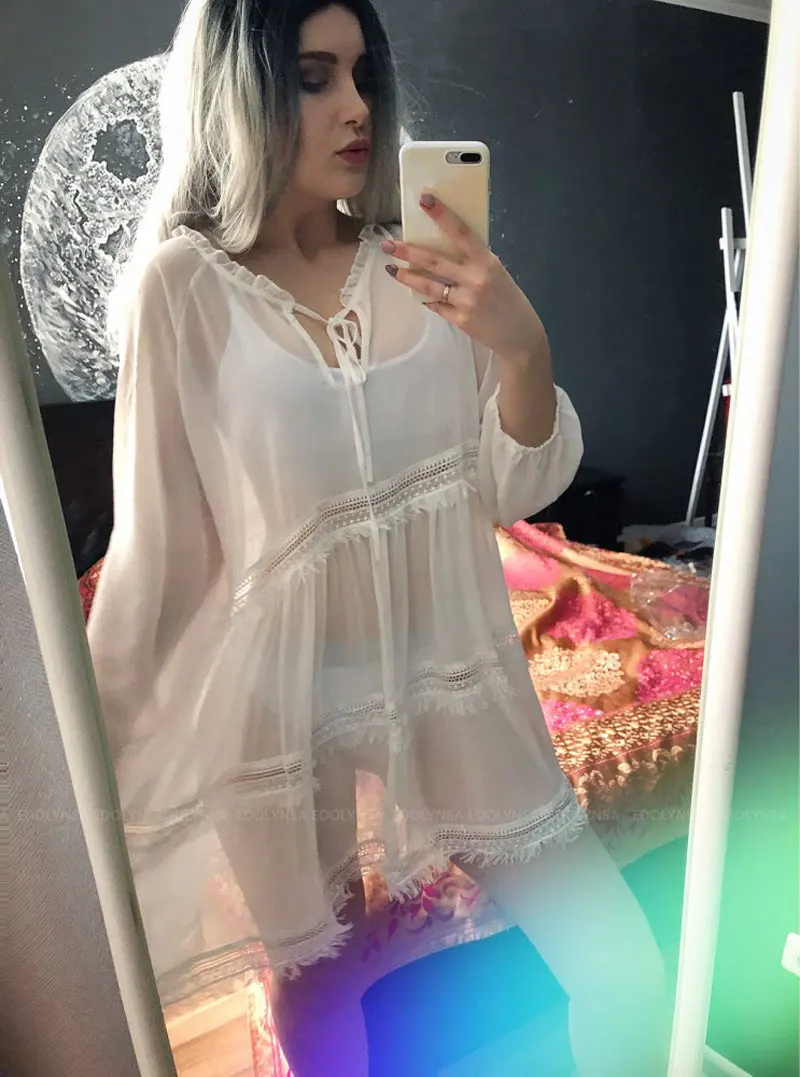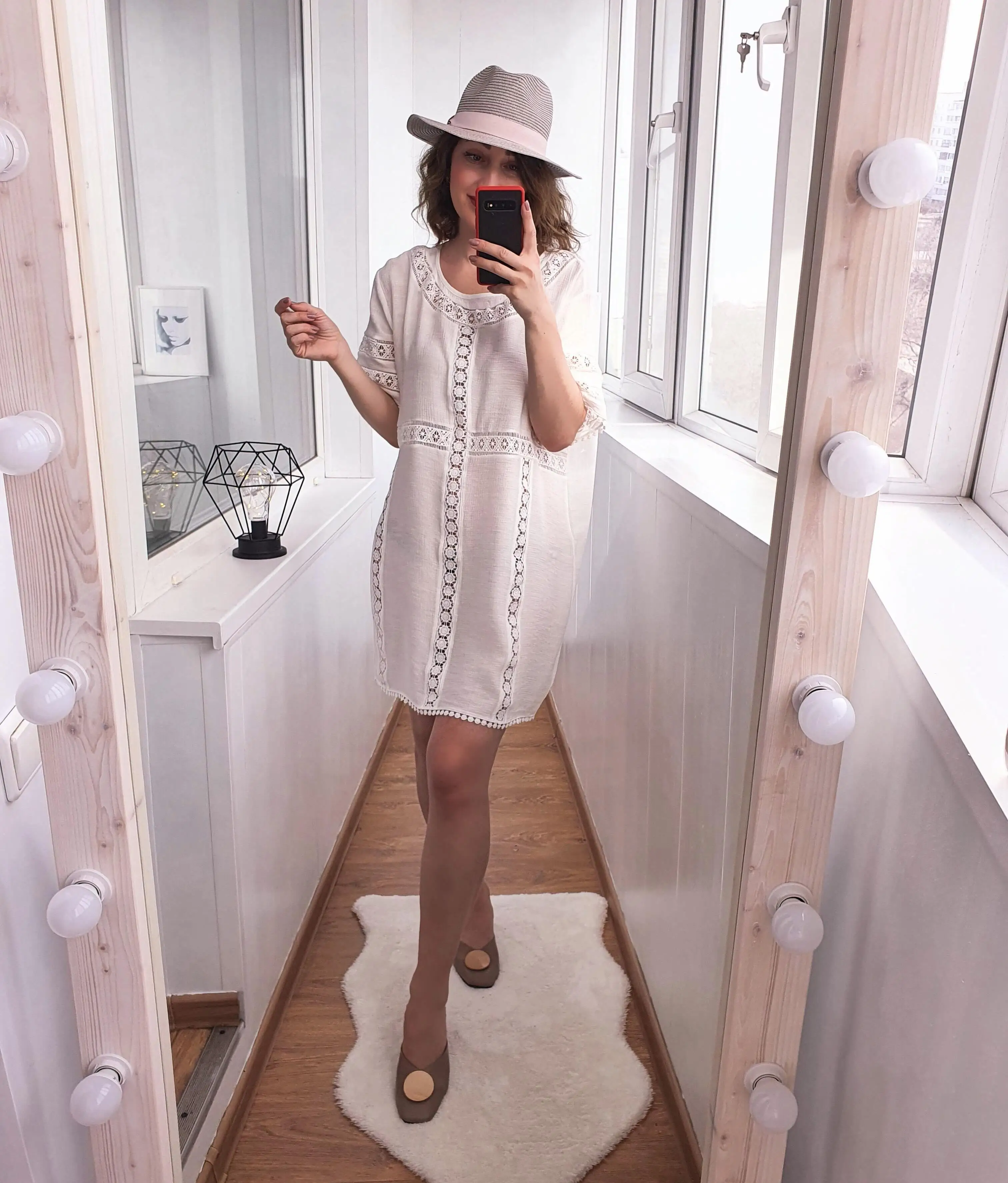 Полностью просвечивается, это не платье, больше как футболка, она имеет длину 65 см. Но материал действительно хлопковый, так что это хорошо ..