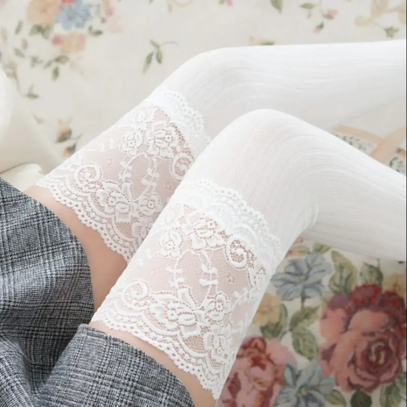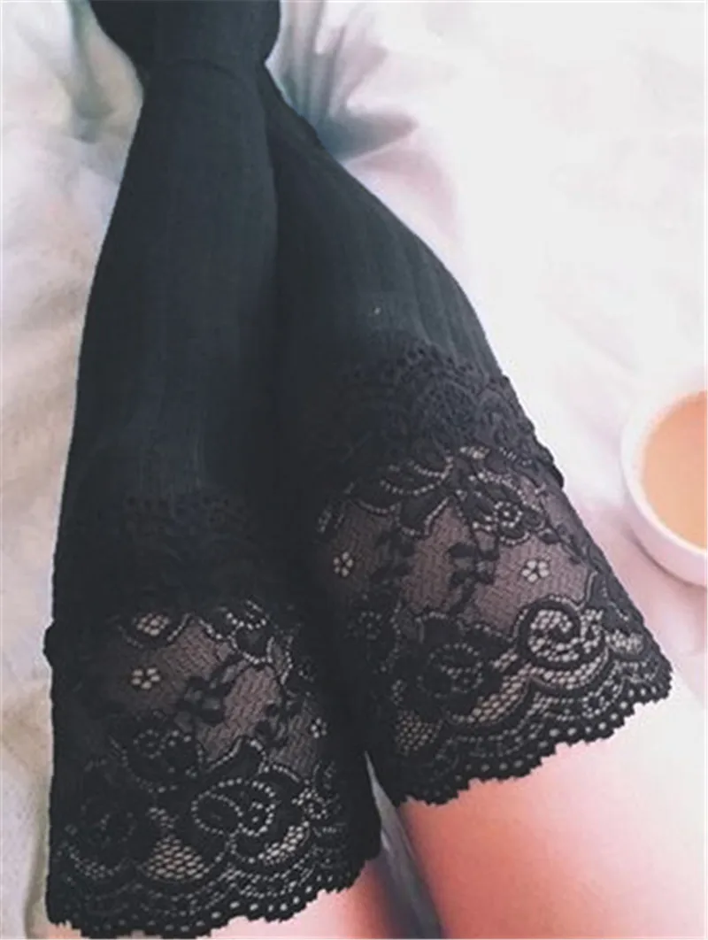 Женские Кружевные Трикотажные хлопковые чулки выше колена, высокие носки, колготки, колготки