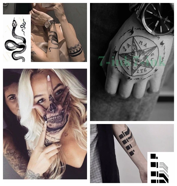 Водостойкая наклейка Временные татуировки, темная пентаграмма, змея, питон, тотем, искусство, переводная имитация татуировки флеш-тату для мужчин, женщин, мужчин