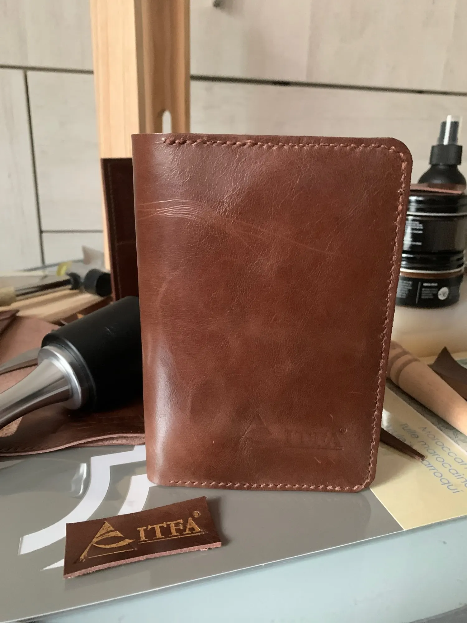 Потертый кожаный бумажник для паспорта