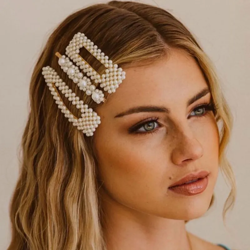 Заколки для волос женские металлические, с жемчугом, 5 шт.компл.