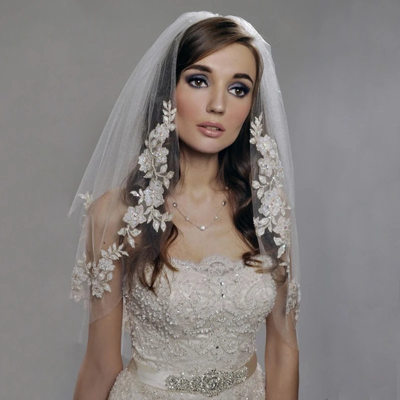 Винтажные белые цвета слоновой кости женские свадебные вуали жемчужные 2 слоя Фата невесты на гребне короткие свадебные аксессуары длиной до локтя