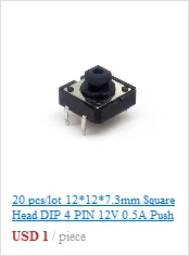 50 шт.лот 6*6*4,3 мм DIP 4-контактный 12 В кнопочный переключатель тактильный такт прямой подключаемый самосброс микропрерыватель 6x6x 5678922