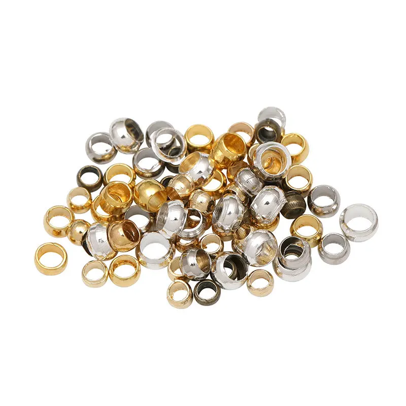 Круглые Обжимные бусины, 300 шт.лот, 2 мм, 3 мм, металлические медные золотистыеСеребристые бусины-Стопперы для самостоятельного изготовления ювелирных изделий