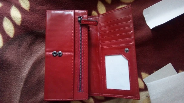 Цвет отличается. На фото красно-бордовый неоднотонный. Пришёл кошелёк темно-красный отнотонный и на вид и по факту как-будто это другой кошелёк. Смотрится дешево, как из дермантина, не так как на сайте. Подруга, которой заказывала, разочарована, я расстроена - это был мой подарок ей. По функциональности - удобный, вместительный, хотелось, чтобы и красивый и благородный был. Спасибо за быструю доставку - 3 недели! С продавцом не общалась.