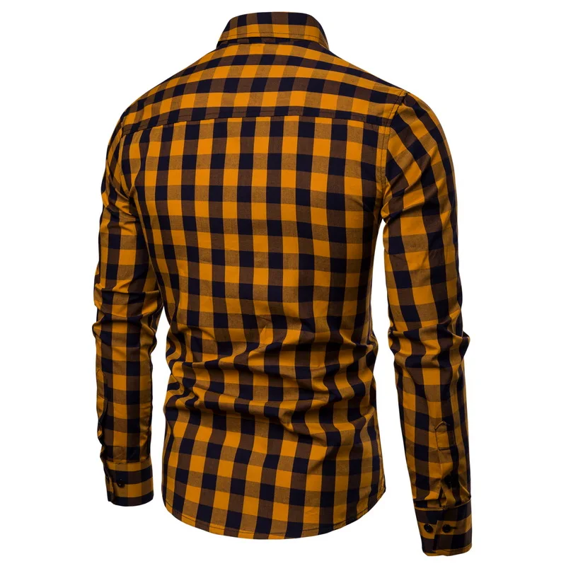 Мужские Роскошные повседневные стильные приталенные деловые рубашки в клетку с длинным рукавом