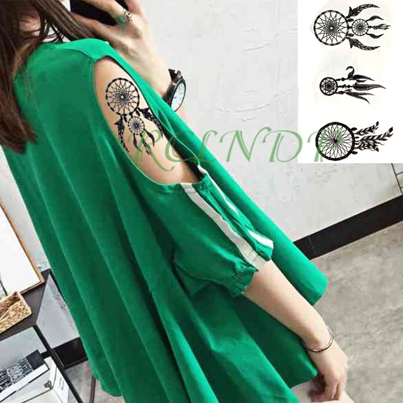 Водонепроницаемый Временные татуировки Эскиз в стиле Ловец снов; Тату в виде перьев, переводятся с помощью воды поддельные быстро Исчезающие тату 10,5*6 см для девочек мужские и женские