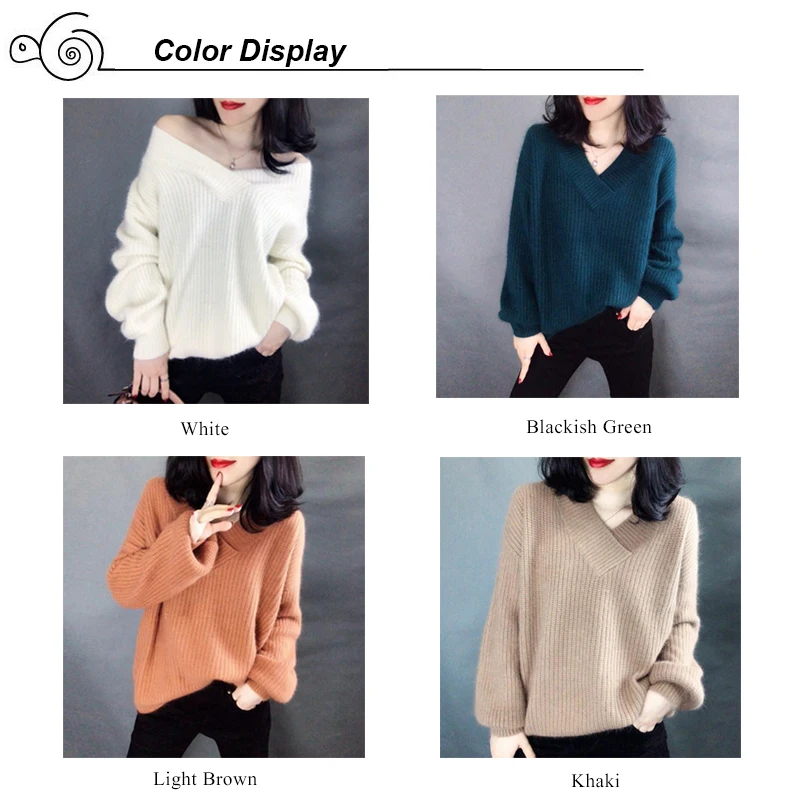 Женский осенний свитер с v-образным вырезом, вязаный кашемировый Женский пуловер с рукавами-фонариками, Однотонный женский элегантный пуловер