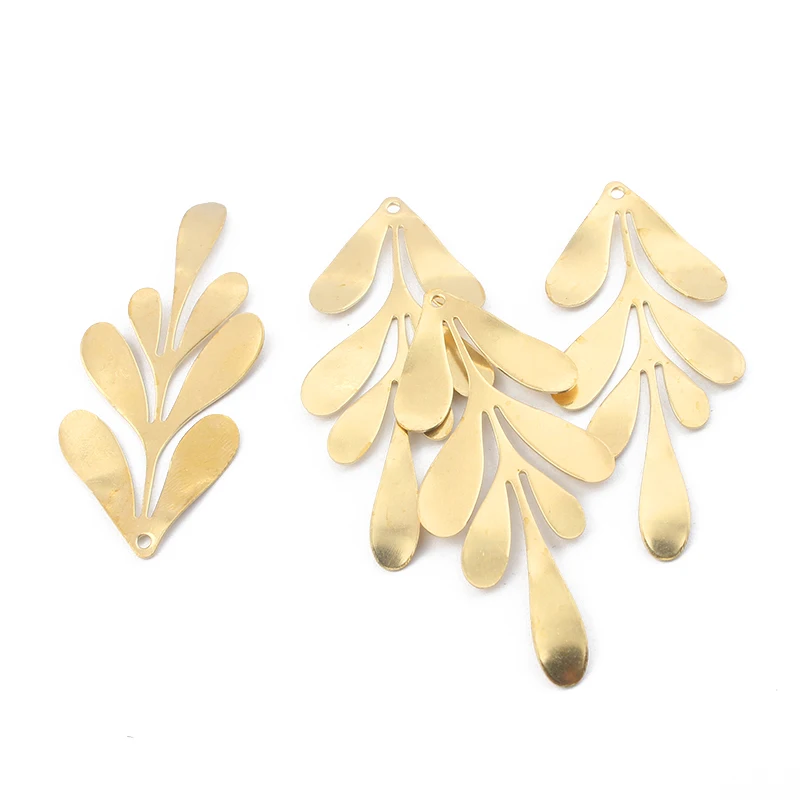 Необработанные латунные подвески в виде листьев и перьев, 10 шт., подвески в виде цветка для самостоятельного изготовления ожерелья, серег, ювелирных изделий, поделок, женские аксессуары