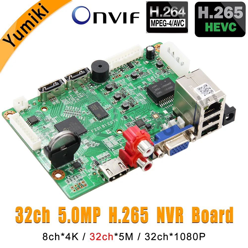 Сетевой видеорегистратор, 8 каналов * 4K32 канала * 5.0mp32ch * 1080P H.265H.264 NVR, плата видеорегистратора, IP-камера с линией SATA ONVIF CMS XMEYE